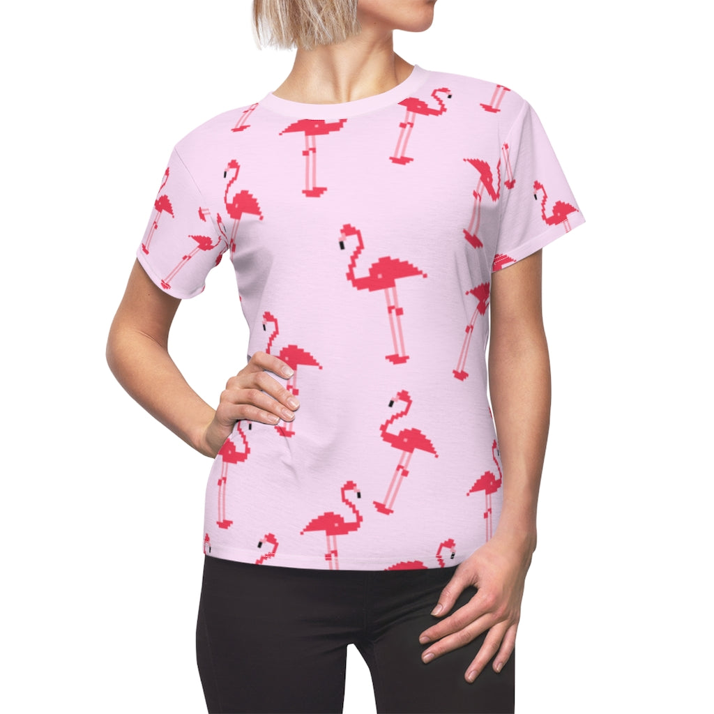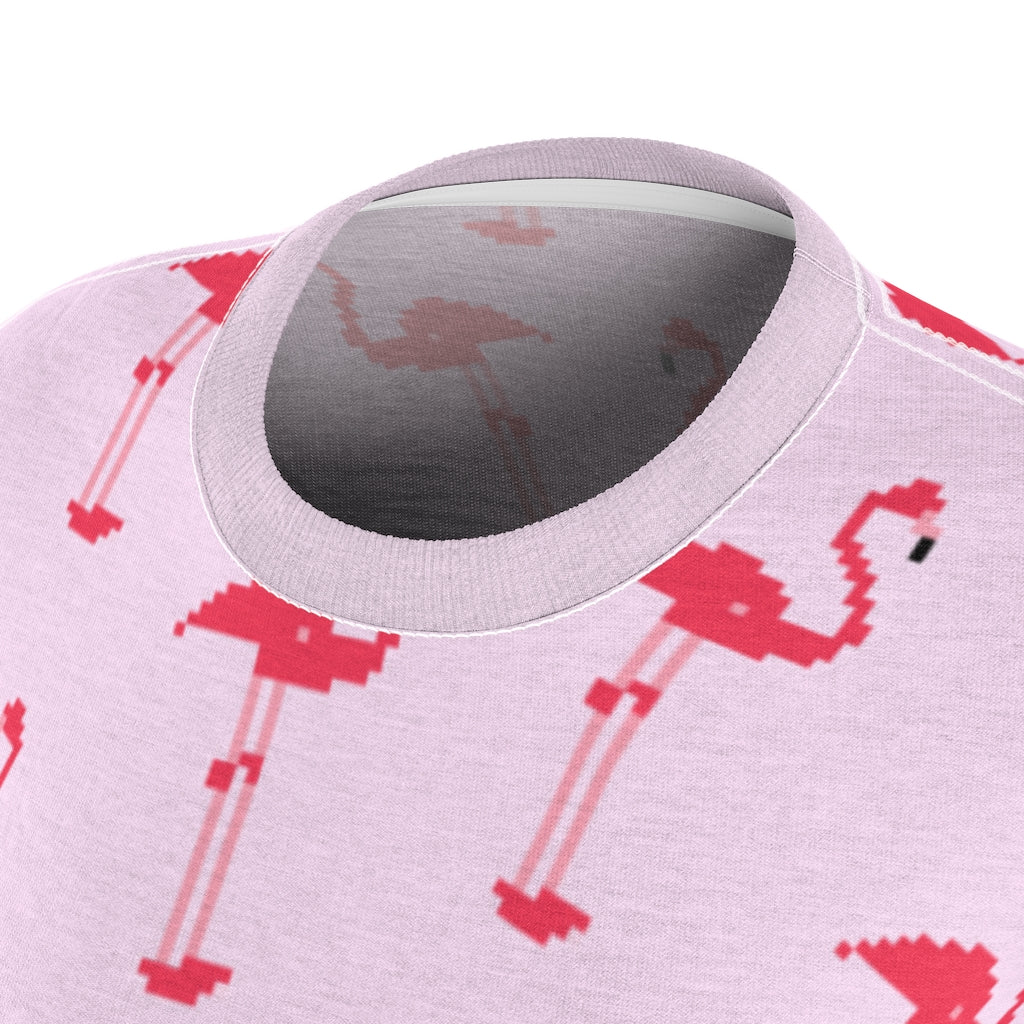 Be a flamingo in a flock full of pigeons. With this cute pink 8-bit flamingo printed tee, you will definitely be able to stand out in a crowd. This fluorescent pink bird-covered tee can be worn on all kinds of occasions: to go to school, while hanging out with friends, or even to sleep in as pajamas. These flamingos know no limits.