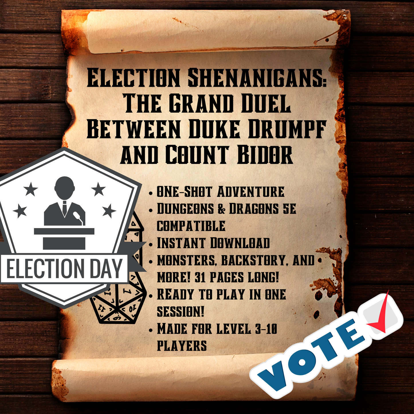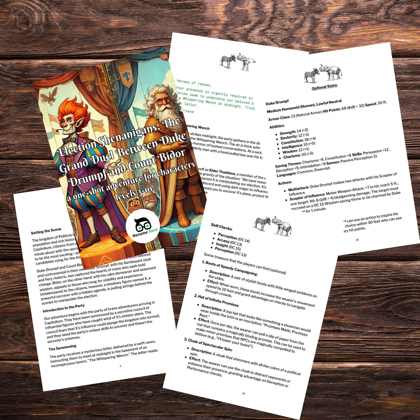Bring a dose of laughter and excitement to your D&D sessions with "Election Shenanigans: The Grand Duel Between Duke Drumpf and Count Bidor." Download your copy today and let the adventure begin!