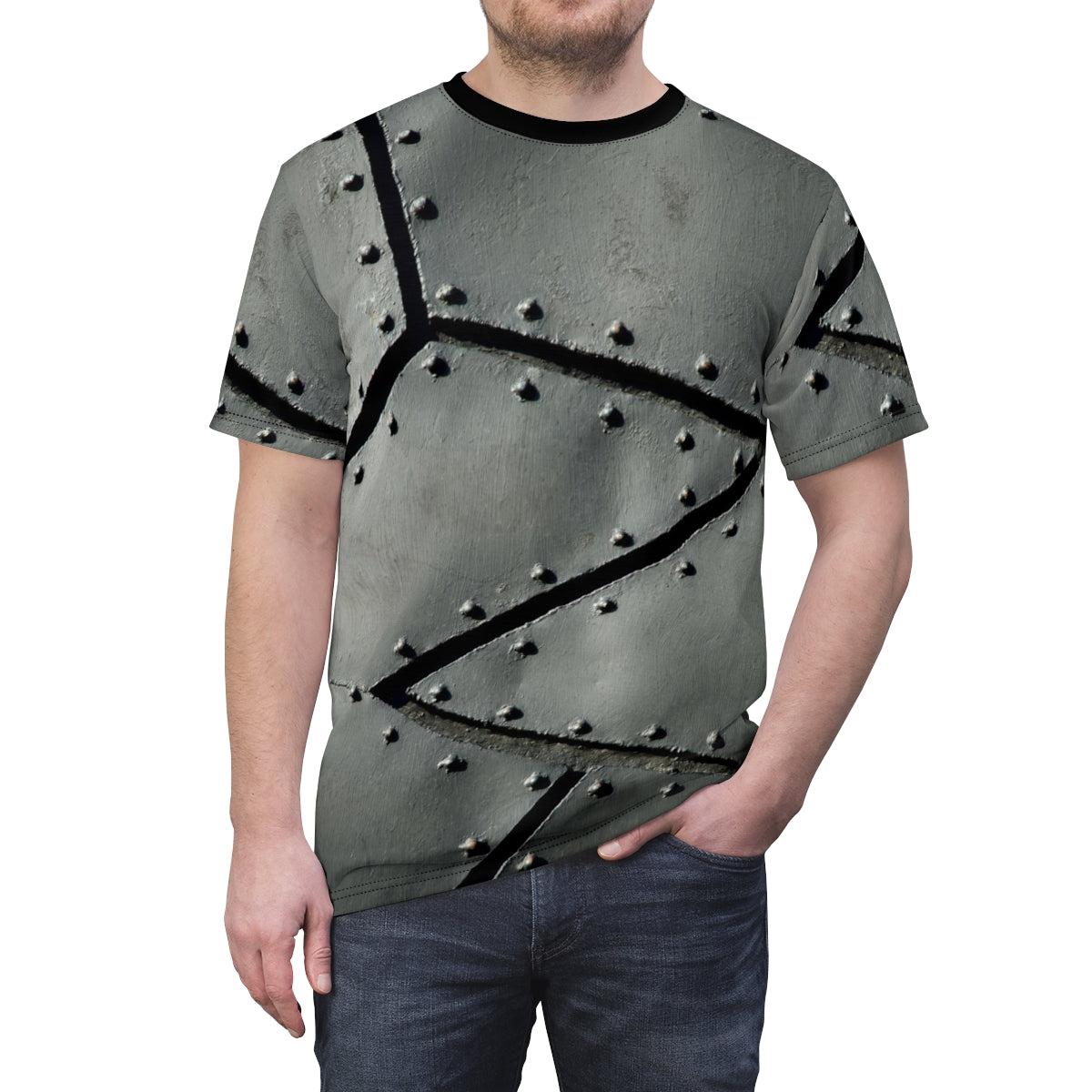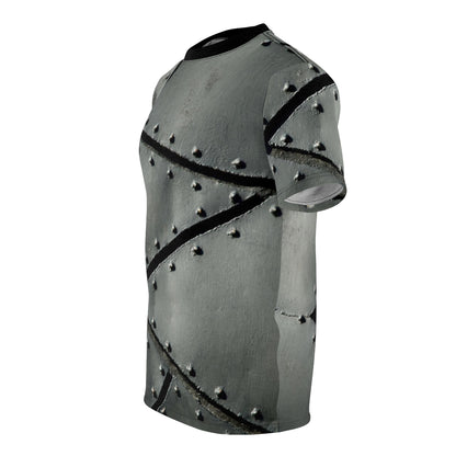 Want to get into Halloween with a stupid easy costume? With the magic of digital printing, you can don this photo-realistic iron plate armor shirt to rapidly transform yourself into a robot, cyborg, knight, or more! With its uniquely textured, thick, microfiber-knit fabric, this t-shirt bears a premium, soft feel that remains lightweight and highly breathable – the perfect combo for a hot day or layering.