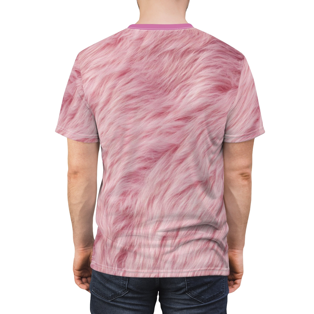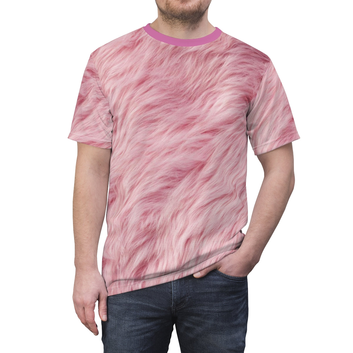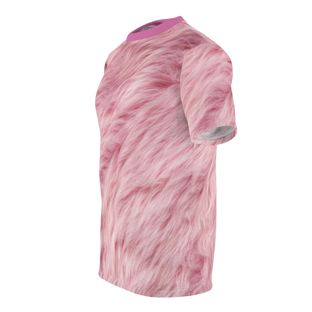 Want to get into Halloween with a stupid easy costume? With the magic of digital printing, you can don this photo-realistic pink fur shirt to rapidly transform yourself into a bunny, unicorn, or more! With its uniquely textured, thick, microfiber-knit fabric, this t-shirt bears a premium, soft feel that remains lightweight and highly breathable – the perfect combo for a hot day or layering.